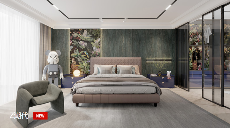 2、色彩多元化,不同于之前相对保守的白色、木色等,现在年轻人更追求设计与个性,搭配更为多样化,色彩也更加丰富。各种时尚圈流行的高级灰,或者跳跃而极具活力的亮色,带来欢快又丰富的卧室氛围,表达了收纳设计的新鲜感。